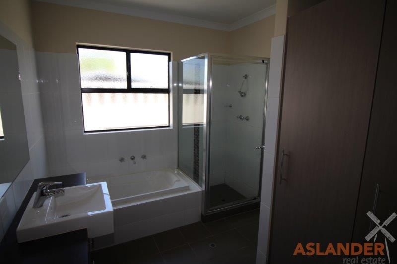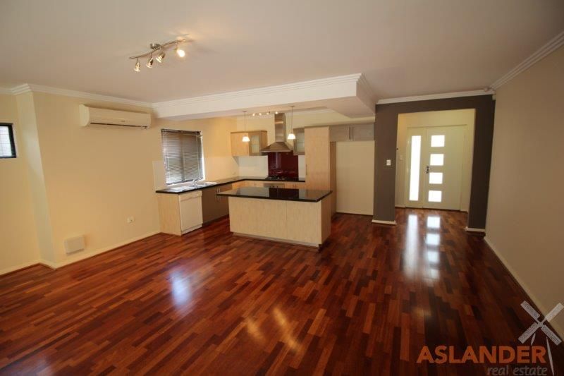Gorgeous three bedroom, two bathroom unfurnished townhouse. Entry. Master bedroom suite downstairs, walk in robe and ensuite. Huge open plan family, dining, kitchen; split system air cond, Foxtel point. Kitchen: gas cook top, electric oven, plenty of cupboard and bench space plus dishwasher. Linen press. Minor bedroom downstairs with built in robe. Main bathroom; bath, seperate shower, vanity/basin. Separate wc downstairs. Hidden laundry behind bifold doors. Loft; private bedroom suite, split system air cond and double door built in robe. Undercover alfresco. Easy care paved rear yard. Storeroom. Double garage with door to rear yard and shoppers entry. Carbay/reversing bay. Security alarm. Warmth of floorboards and timber staircase.